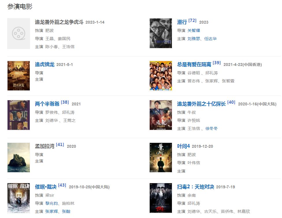2023年1月14日,出演的动作电影《追龙番外篇之龙争虎斗》在爱奇艺云影院独家上映,在片中饰演肥波。12月29日,参演的电影《潜行》上映。
