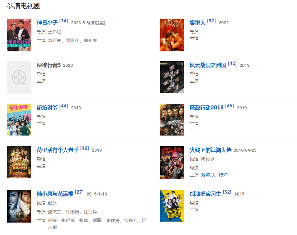 2020年,特别出演悬疑警匪剧《使徒行者3》。