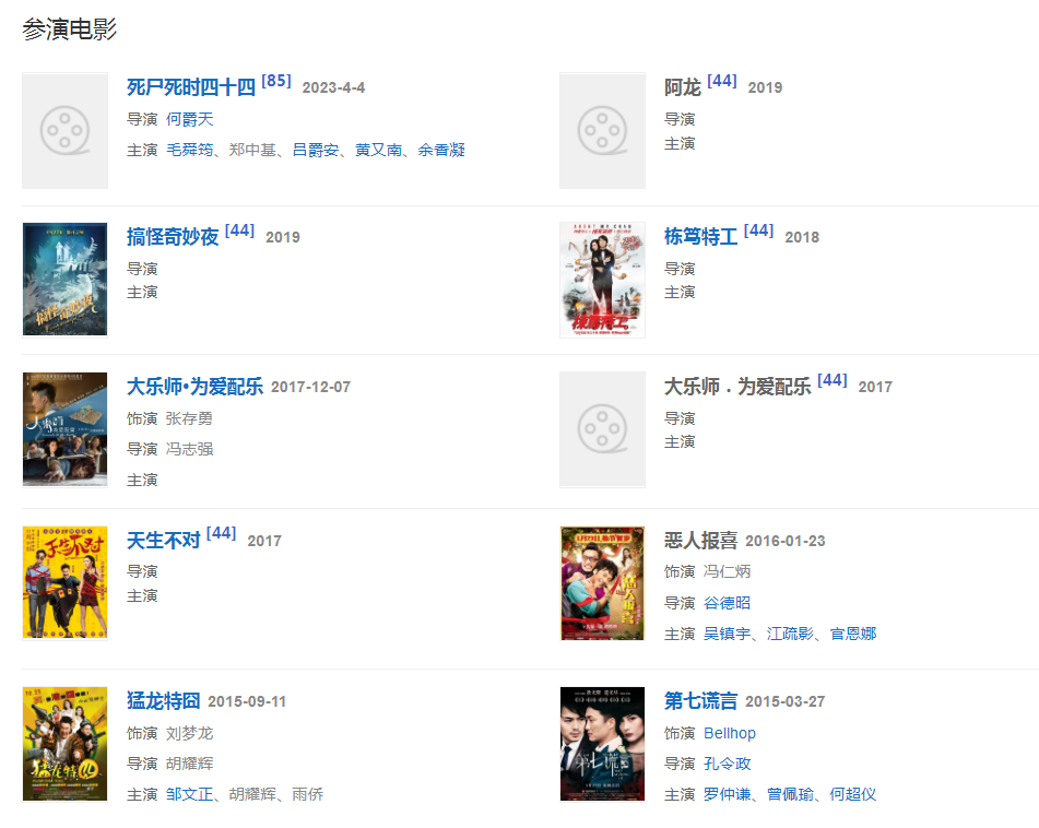 2012年在《四大名捕》饰演“追命”;同年凭借电影《低俗喜剧》获得第49届台湾电影金马奖最佳男配角奖。