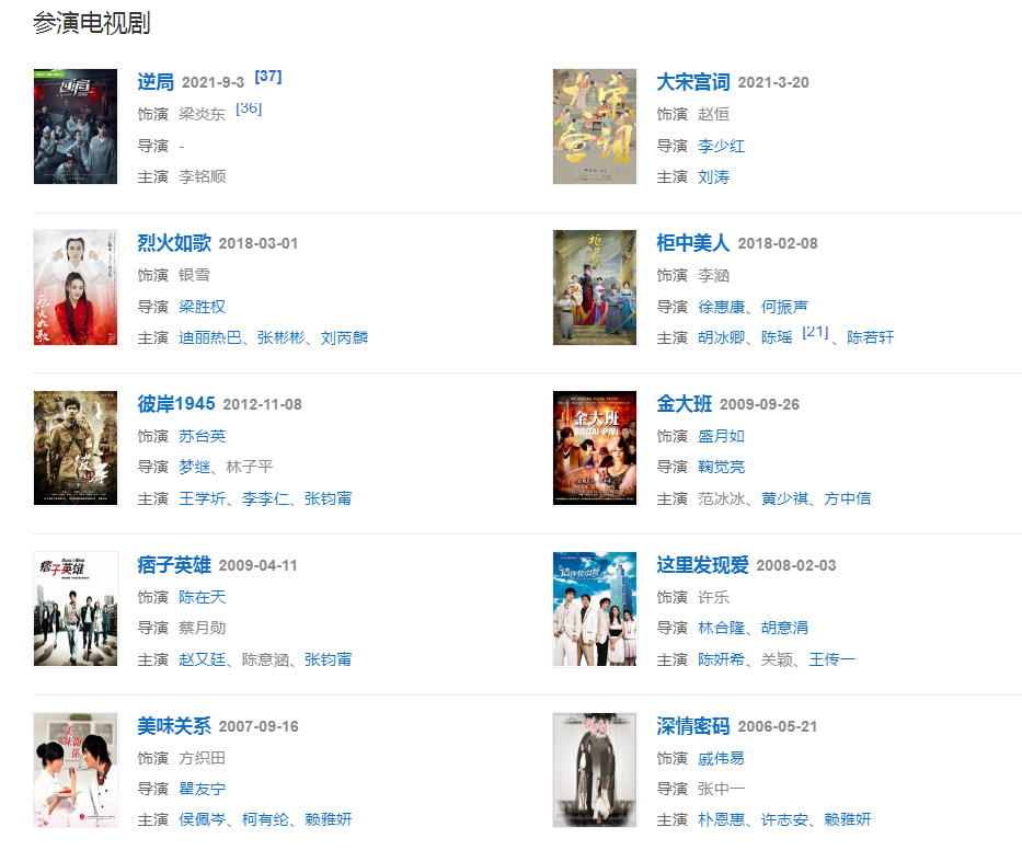 代表作品:流星花园、战神、深情密码、痞子英雄、彼岸1945、大宋宫词、逆局