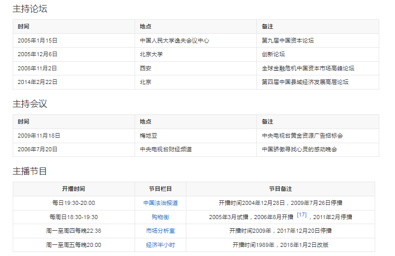 代表作品:购物街、市场分析室、中国财经报道、中国法治报道